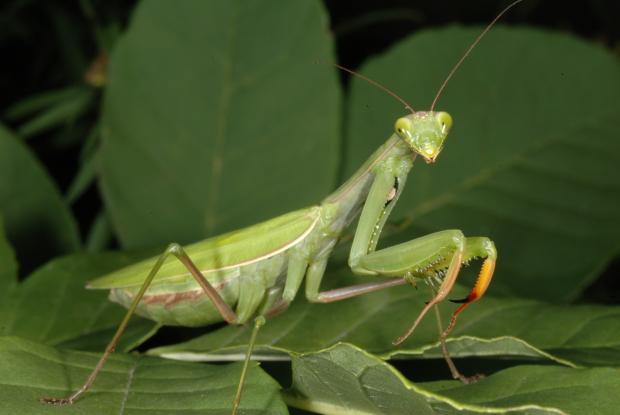 La tête très mobile porte une paire d'antennes et se termine par une petite bouche. Grâce à ses gros yeux composés et à trois ocelles, la mante religieuse jouit d'une vue exceptionnellement bonne pour un insecte.