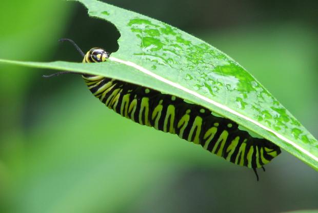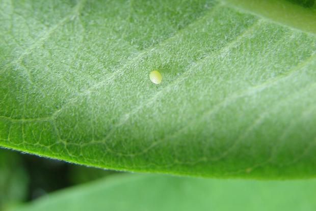 À ce moment, les femelles pondent et les chenilles émergent trois à douze jours plus tard. Elles se nourrissent des feuilles d’asclépiade durant deux semaines.