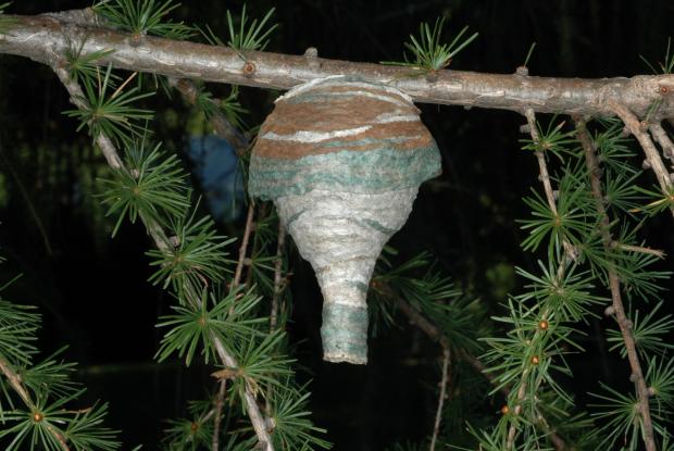 Le papier utilisé pour l’élaboration des nids est fait d’une pâte constituée de fibres végétales mêlées avec la salive des guêpes. Sa couleur varie selon la source des fibres : bois, écorce, tiges, carton, etc. Les différentes espèces de guêpes peuvent avoir des préférences quant aux fibres utilisées.