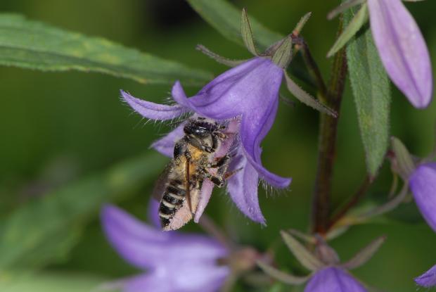 Après avoir pondu, la mégachile ferme la cellule, généralement à l'aide de morceaux de feuilles ou de pétales. Une fois le nid complété, l'insecte bouche son extrémité. Chaque femelle peut construire plus d'un nid. La larve qui sort de l'œuf est blanche. Sa cellule contient assez de nourriture pour assurer son développement complet.